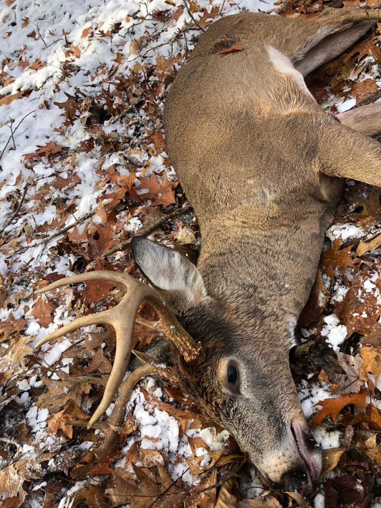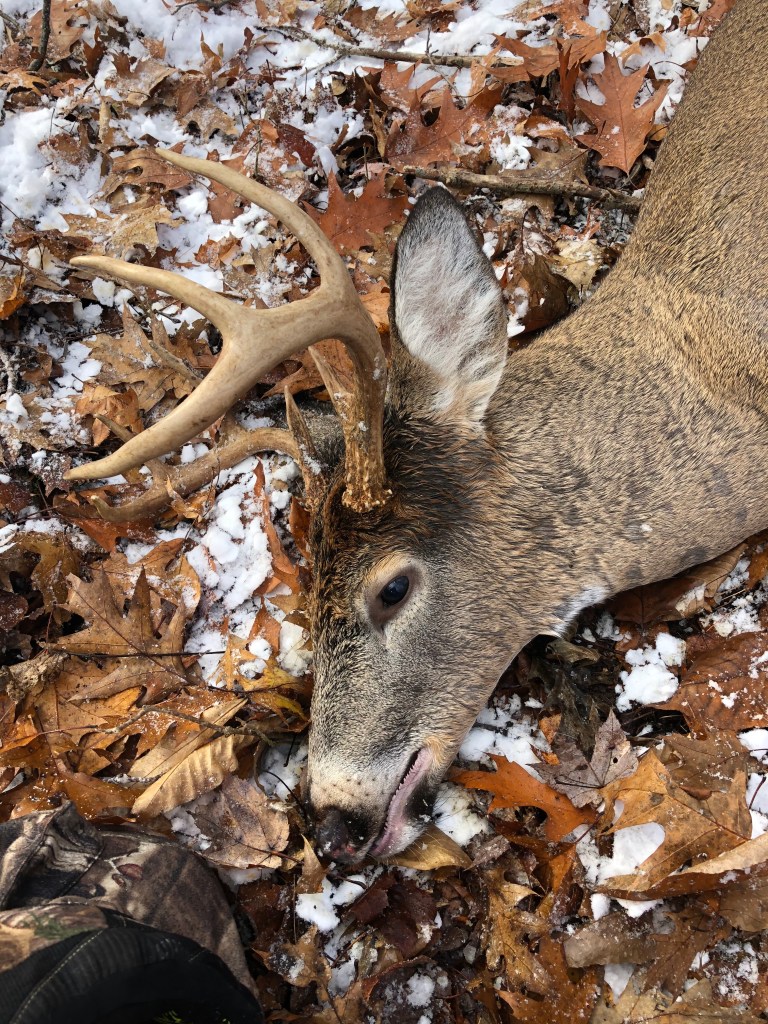 Two minutes pass… The buck takes two steps forward and one step to his right. Giving me a quartering away shot. I yell at myself, “do not make a stupid shot”. I put my sight right on his second to last rib. Click… The next thing I remember is watching the deer rear up and kick his back legs as high as they could up in the air. I couldn’t believe it, in my head I’m thinking, “I can’t believe I noticed that”. The deer kicking his legs up usually means you hit him in the heart. I feel like I just assumed in that moment that my mind would go black. However, I felt this extreme sense of clarity.