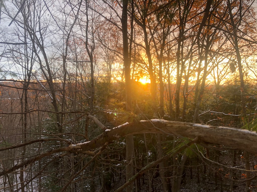 Flash forward to this year. For those of you that have read my blog you know I have harvested my first doe on October 5th (if you haven’t read that go back and read it, it’s a good story) and that I have been in the woods a decent amount this year. On Thursday morning it was going to be around 30 degrees. I decided to take off of work to try and see if I could see the rut in action. I got up at 5:00 am and was in the car and at the spot by 5:30 am. As I started to walk up to my stand I look up from my trail and see about 10-13 different sets of eyes staring at me. “Shit my hunt is over before it’s even started” is all I could think. None of the deer even spoke, I didn’t hear any running or anything as I continued on up the trail. I climbed up my tree and as I take my foot off the last step to get into my tree I hear running. I see the ghostly silhouette of two deer running down the hill past my stand. I had high hopes for the rest of the morning but all I saw was a tiny spike and a really small doe. I packed it up and went home around noon. That night the weatherman said we were going to get about three inches of snow.